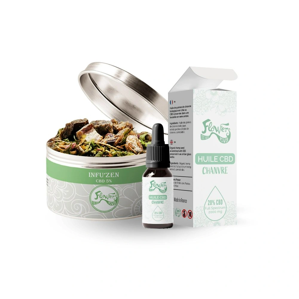Découvrez le Pack CBD Relax Duo : huile CBD 20% et une infusion Infu’Zen pour un moment de détente et de bien-être. Un duo parfait pour se relaxer à tout moment de la journée.